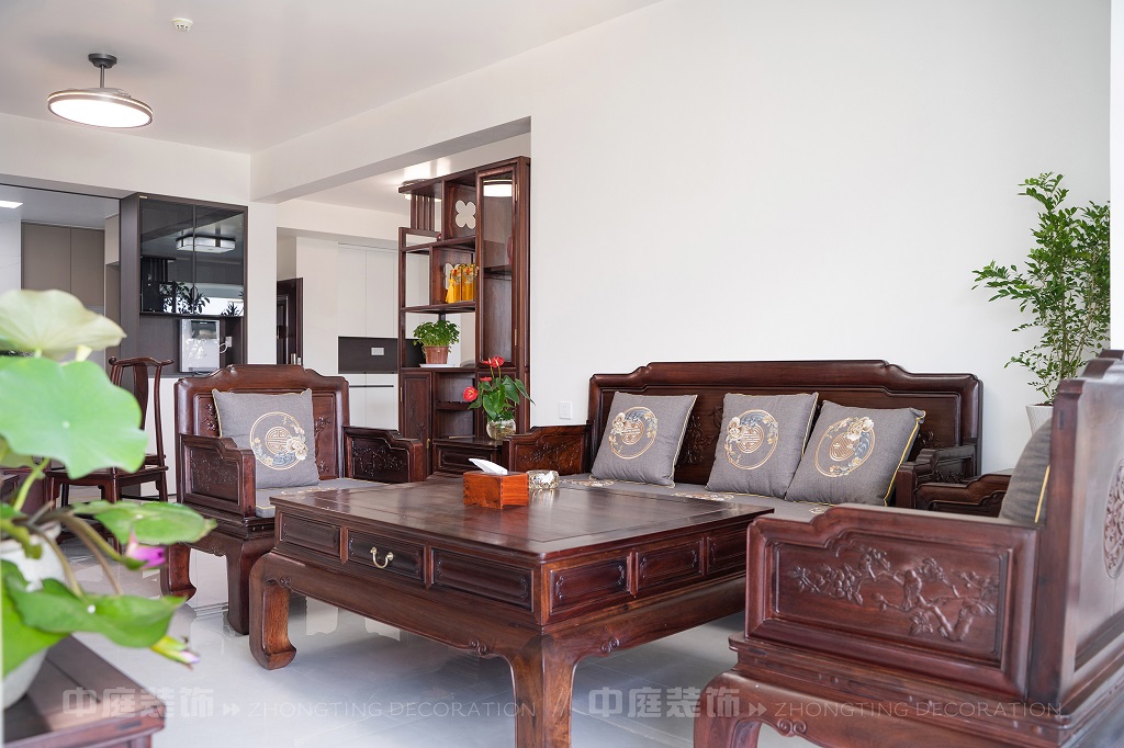 瀏覽量:179全屋以深色實木家具為主,雕花工藝精致細膩,盡顯中式家具的古樸質感。搭配帶有傳統(tǒng)紋樣的抱枕,在細節(jié)處傳遞中式美學。空間中綠植點綴其間,與木質家具相得益彰,營造出自然清新的氛圍。無論是客廳的沙發(fā)組合,還是茶室的茶桌茶具,亦或是餐廳的圓桌設計,都在簡約的現代空間里,勾勒出中式家居的典雅與詩意。