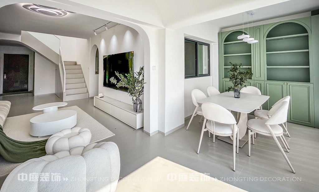 瀏覽量:142這一套綠意盎然的奶油風(fēng)格好似把森林搬進(jìn)了家,軟乎乎的奶白沙發(fā)搭配苔蘚綠毛毯,抱枕選了粉綠撞色,往上面一躺,一天的疲憊都被融化了!圓潤(rùn)的白色組合茶幾,顏值與實(shí)用并存,氛圍感直接拉滿。墻面掛畫大葉綠植藝術(shù)畫,角落擺放鮮活綠植,將自然綠意融入空間。